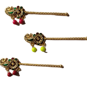 This is a beautifully crafted decorative bansuri (flute) adorned with intricate floral designs in red, green, and gold tones. It features sparkling stone embellishments and two red hanging beads, adding to its traditional and festive appeal. Perfect for Laddu Gopal or Krishna idol decoration.